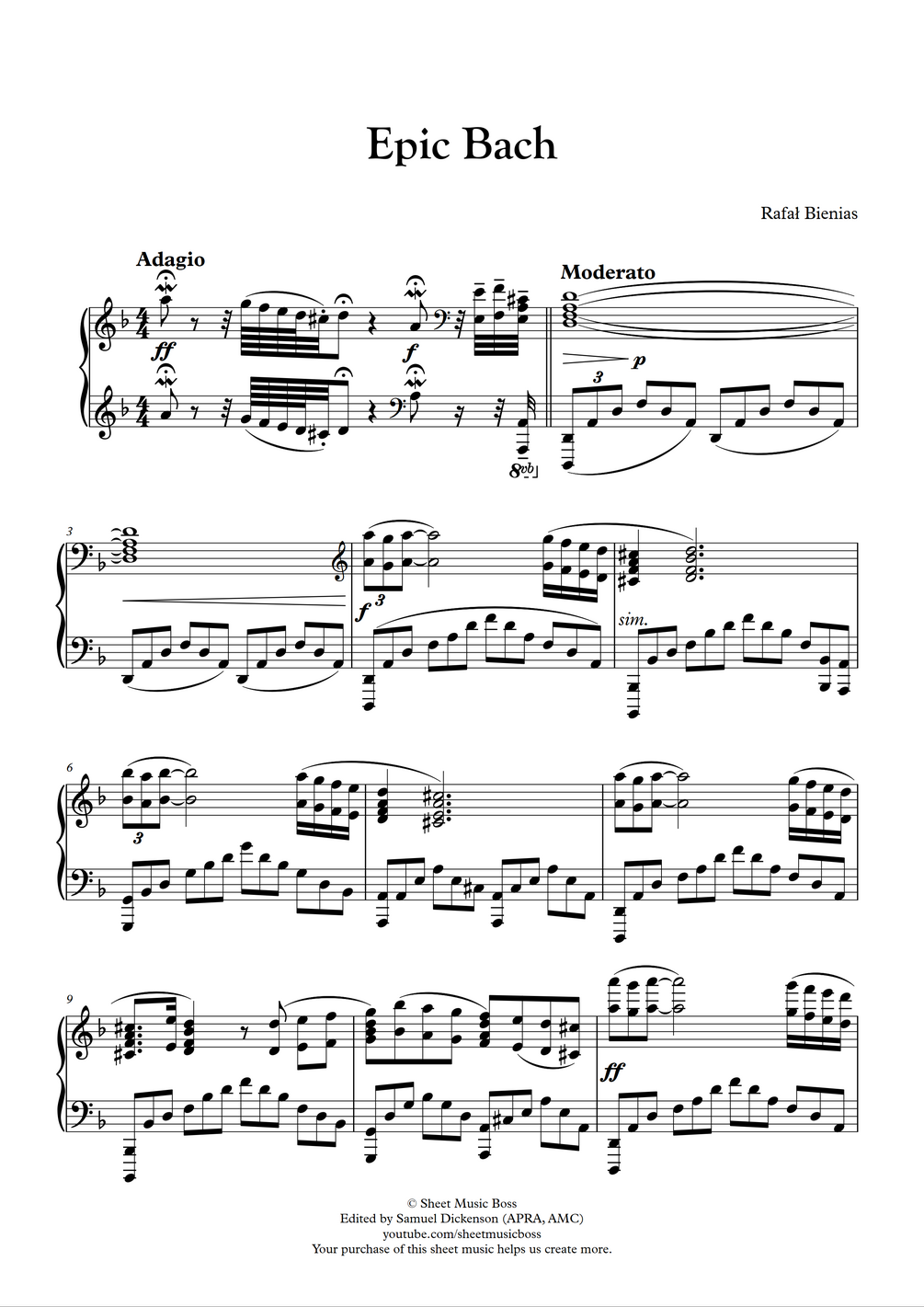 We wonder what Bach would have written if he were alive today in the age of Hans Zimmer and epic movie soundtracks... ...wonder no more with this incredible Epic Bach piano extravaganza! This fantastic piano work is awesome to play and would sound incredible in a recital.
