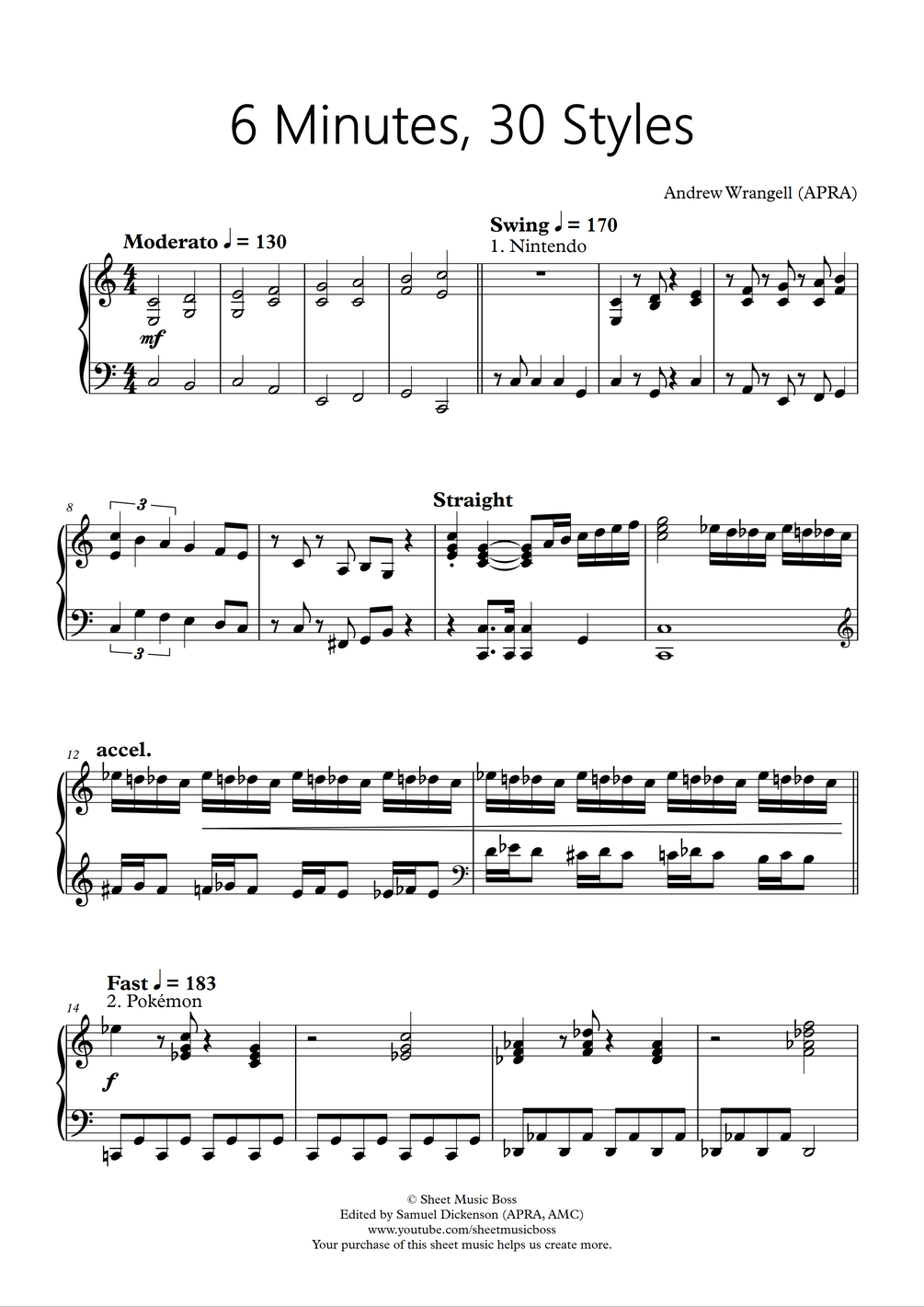 6 Minutes, 30 Styles (Piano Sheet Music PDF, MIDI, and MP3)