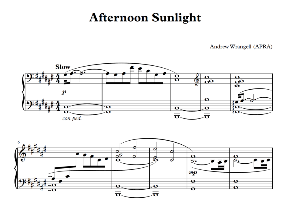 Afternoon Sunlight is an original piano work from SMB's Andrew Wrangell. It's the fourth in the Sunlight album.
