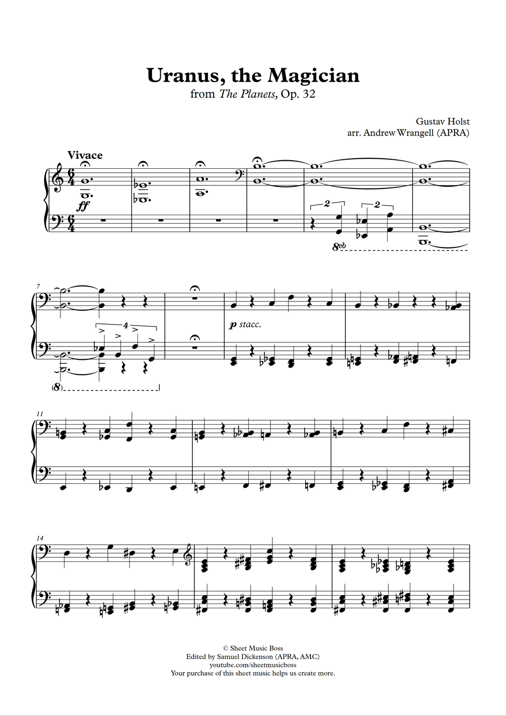 Gustav Holst - Uranus, the Magician (from The Planets, Op. 32) Solo Piano Version (Piano Sheet Music PDF, MIDI, and MP3)